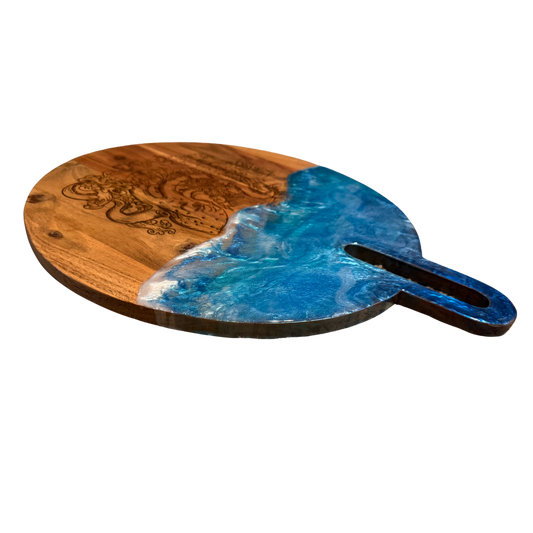 Ocean Resin Engraved Circle Board Neptune Fighting Kraken
