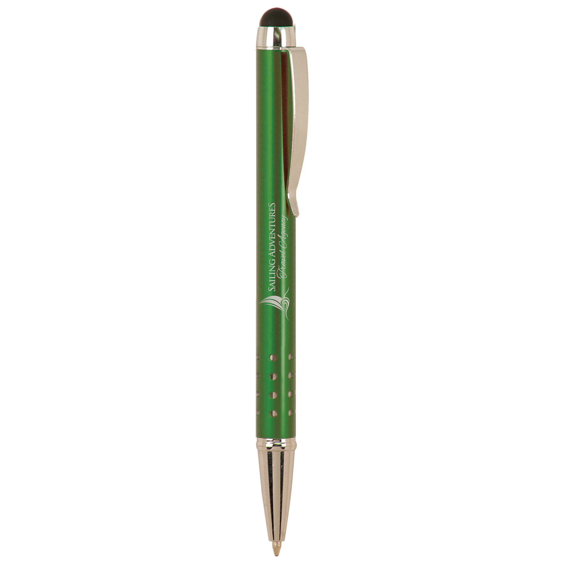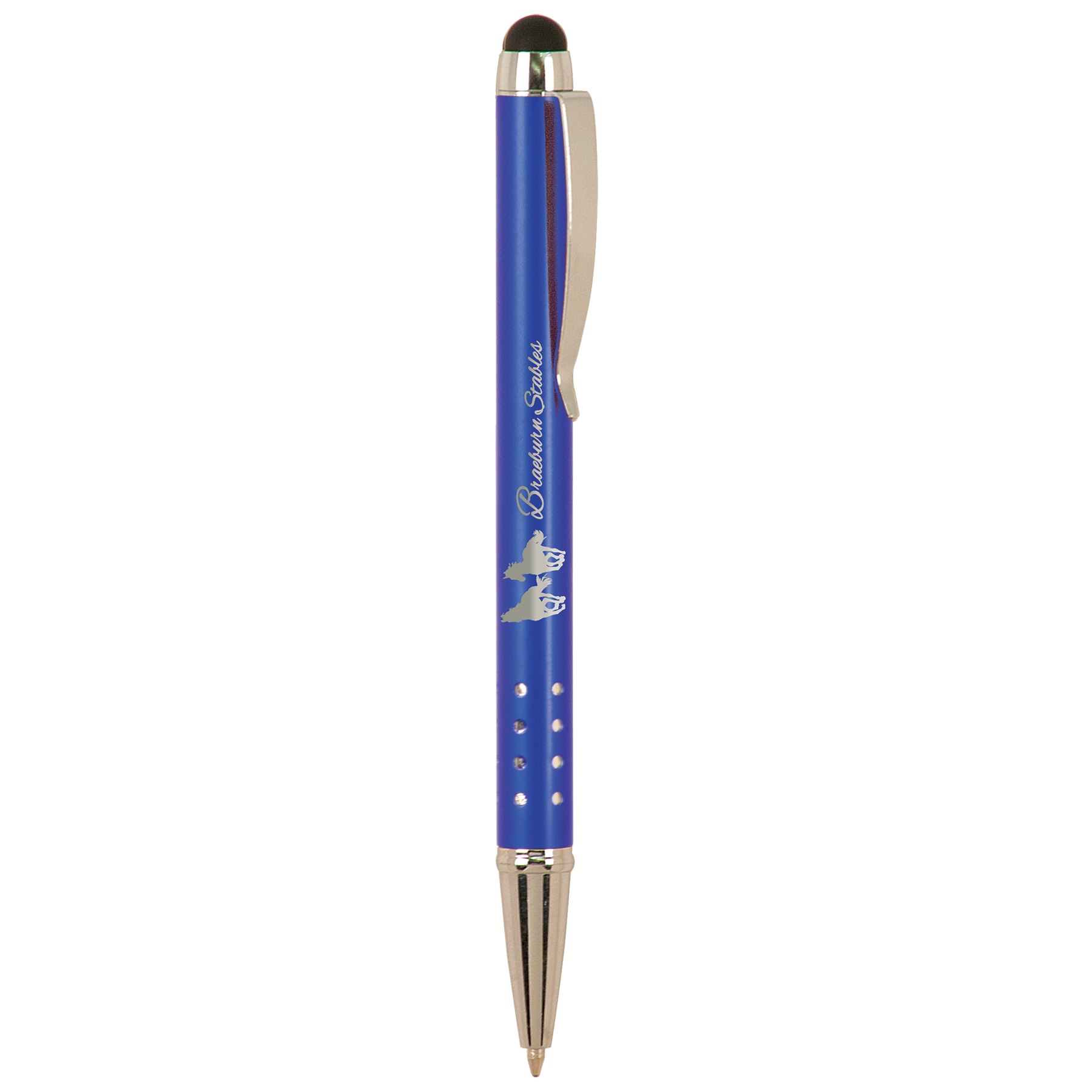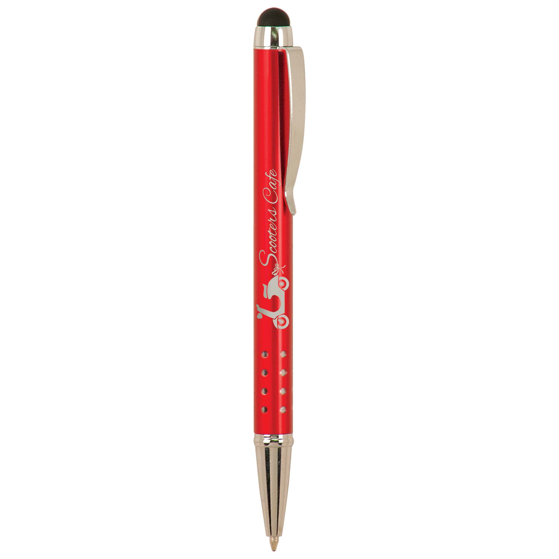 Elevate your writing experience with the "Silver Trim Engraved Pen with Stylus Top," a fusion of elegance and technology that fits perfectly in your hand. At 5.5 inches of sleek craftsmanship, this pen is the ideal size for comfort and portability, whether you're signing important documents or jotting down creative ideas.
